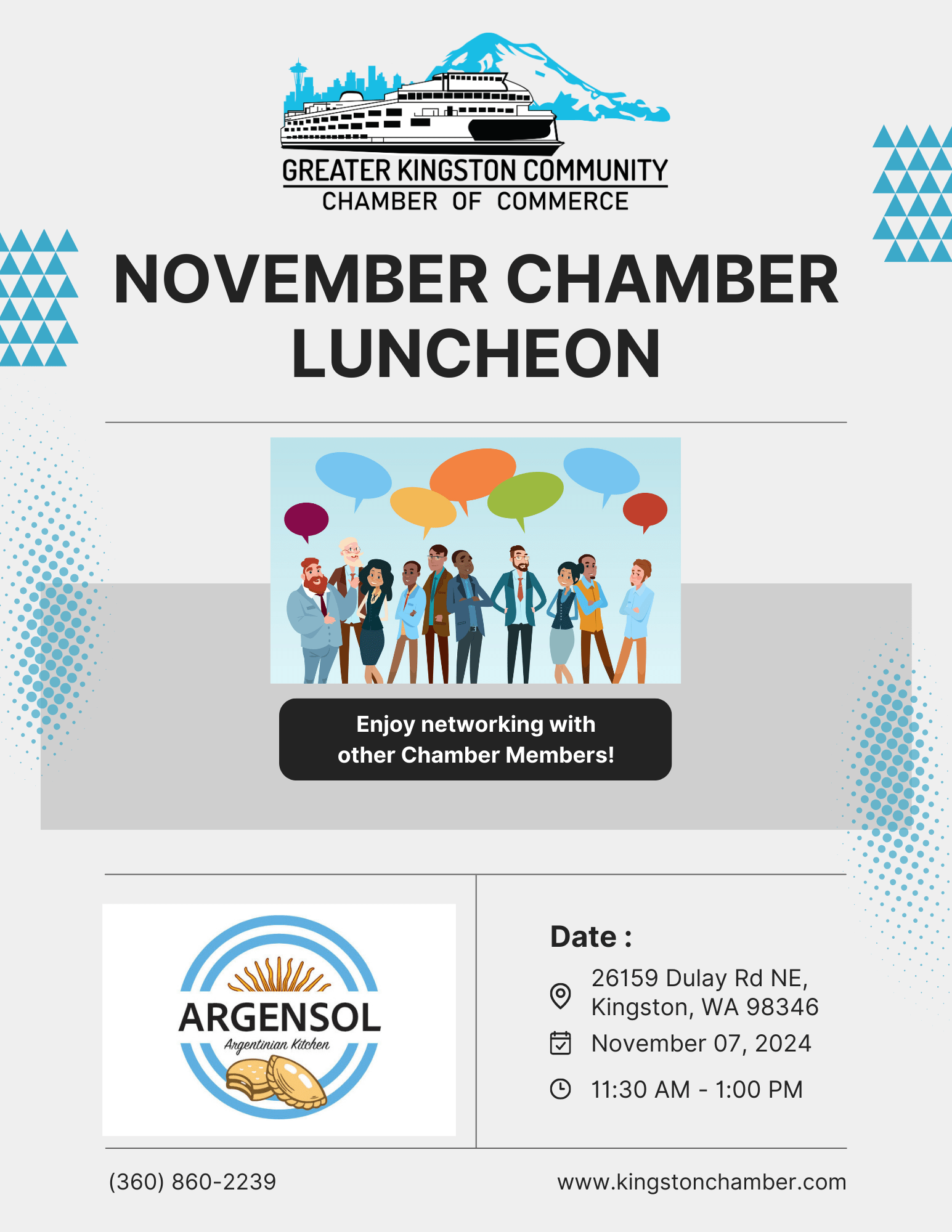 Join us for our November Networking Chamber Luncheon, where professionals from various industries come together to connect, collaborate, and share insights. This month’s theme focuses on fostering community partnerships and innovative strategies for growth. Enjoy a delicious meal while engaging in meaningful discussions and networking opportunities. Whether you're looking to expand your business connections or gain fresh perspectives, this luncheon is the perfect setting. Don't miss the chance to elevate your networking experience and be inspired by attendees sharing their success stories. We look forward to seeing you there!