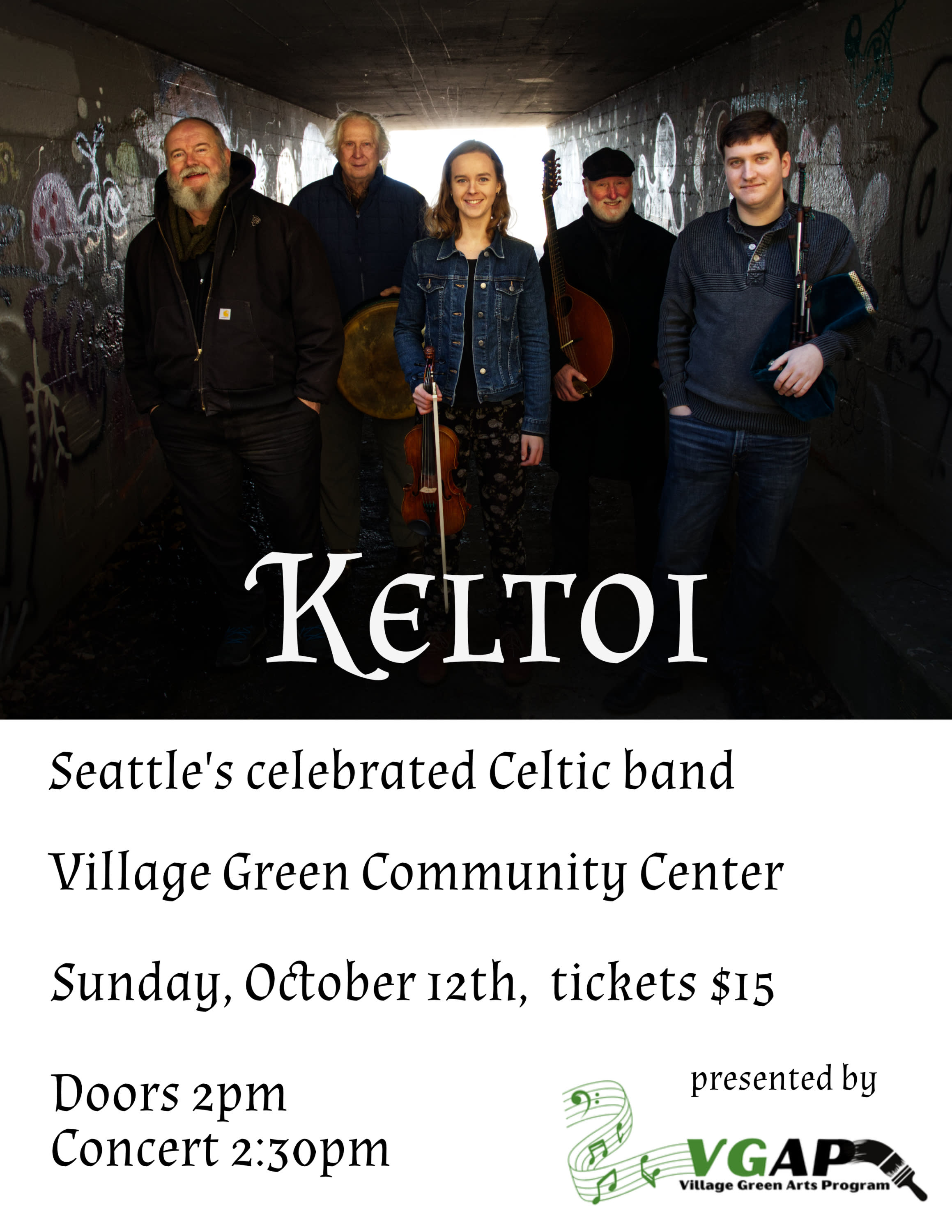Join us for Seattle's celebrated Celtic band, Keltoi! Doors open at 2pm, Concerts start at 2:30pm, Tickets $15 Keltoi's spirited interpretations of Scottish and Irish dance music and soulful vocal harmonies are innovative, entertaining, and uplifting. Ranging from the fiery to the poignant, Keltoi's music reflects the passion and experience of its members.Additional Info