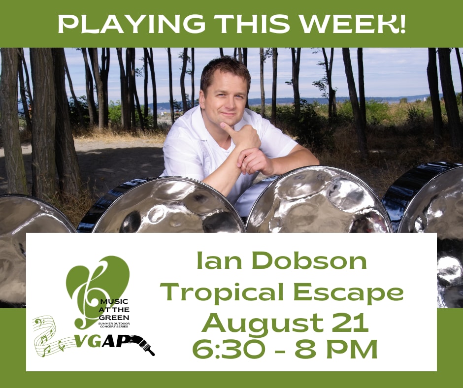 Experience the 'Music at the Green' series on Wednesday, August 21st, starting at 6:30 PM. Remember to bring a chair, invite a friend, and enjoy an evening featuring a performance by Ian Dobson. Ian's signature musical style is his fusion of diverse cultural influences. He enjoys blending different musical elements to make the music of various cultures relatable to North Americans. For a sneak peek or more details about the artist, please visit his website. https://www.iandobson.com/